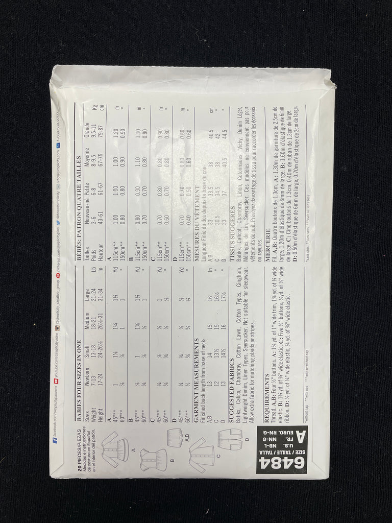 Pattern pieces: missing tab for version 1 (piece F). Instructions and transfers are included.