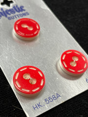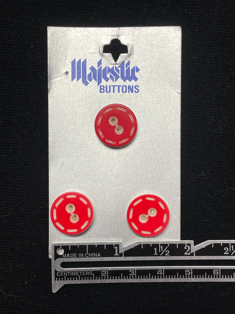 Button Plastic Set of 3 Vintage - Red with White "Stitching"