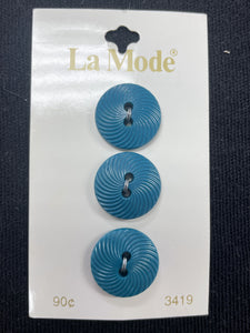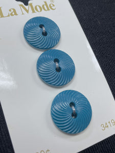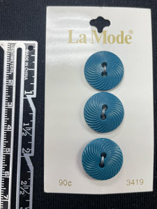 Button Plastic Set of 3 Vintage - Teal Green with Embossed Swirl