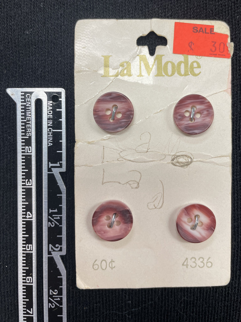 Button Plastic Set of 4 Vintage - Maroon with Striated with White