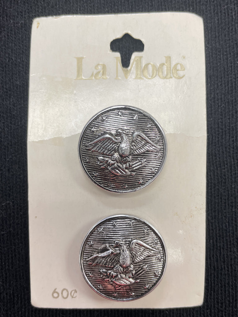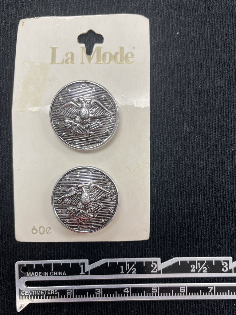 Buttons Metal Set of 2 Vintage - Silver with Eagles