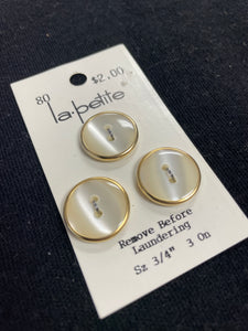 Buttons Plastic Set of 3 - Pearlescent Off White with Metallic Gold Edge