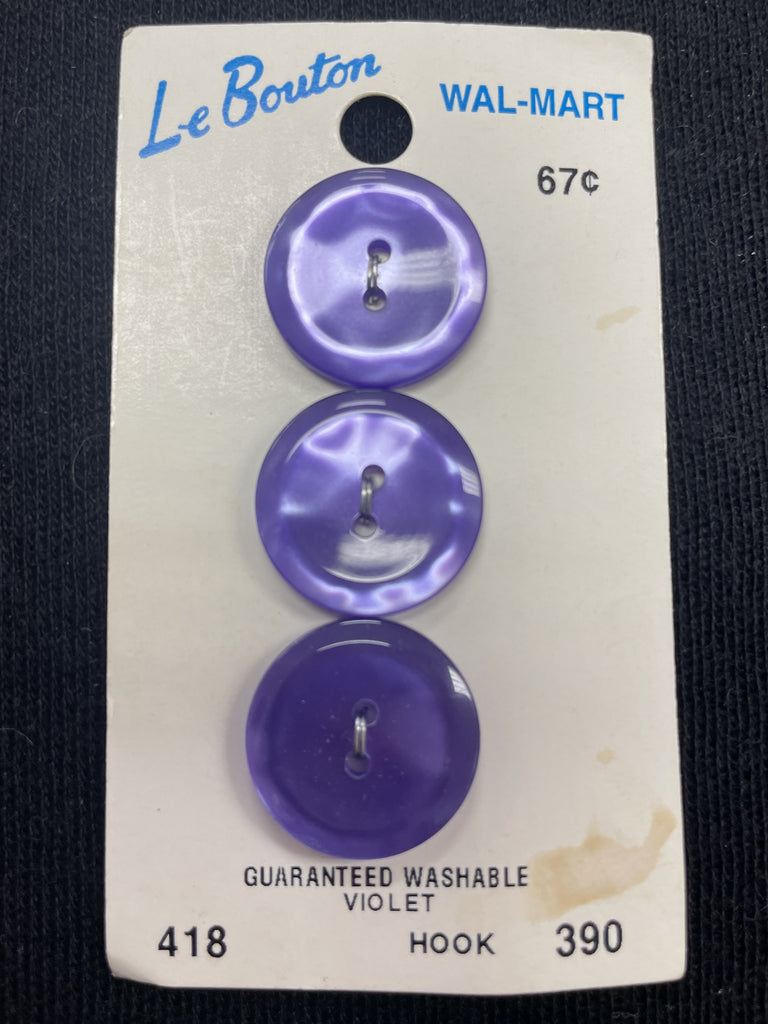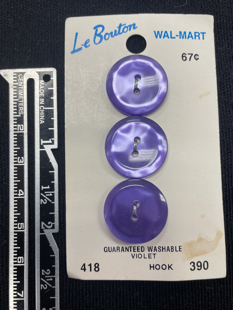 Buttons Plastic Set of 3 Vintage - Pearlescent Purple