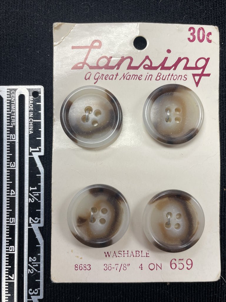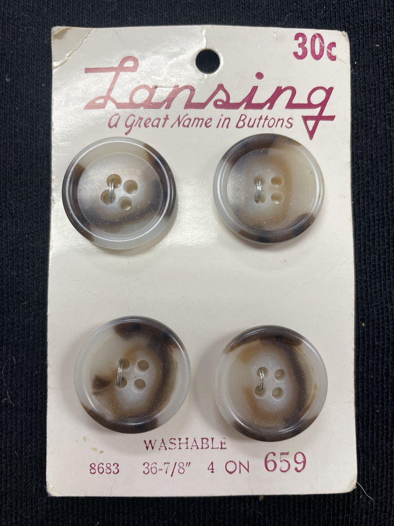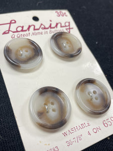 Buttons Plastic Set of 4 - Mottled White, Tan and Brown