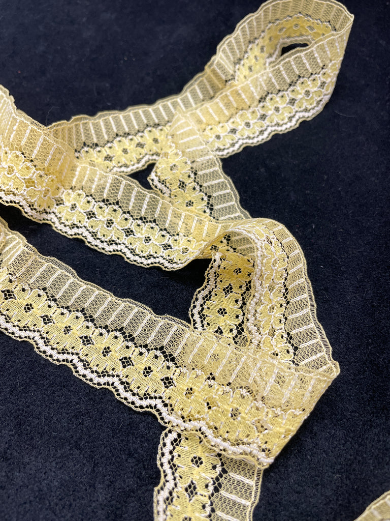 6 2/3 YD Polyester Lace Trim By-the-Yard - Yellow with White Scallop